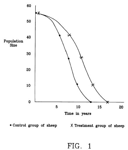 FIG. 1 are plots of the survival curves for a control group of sheep and a treatment group of sheep;